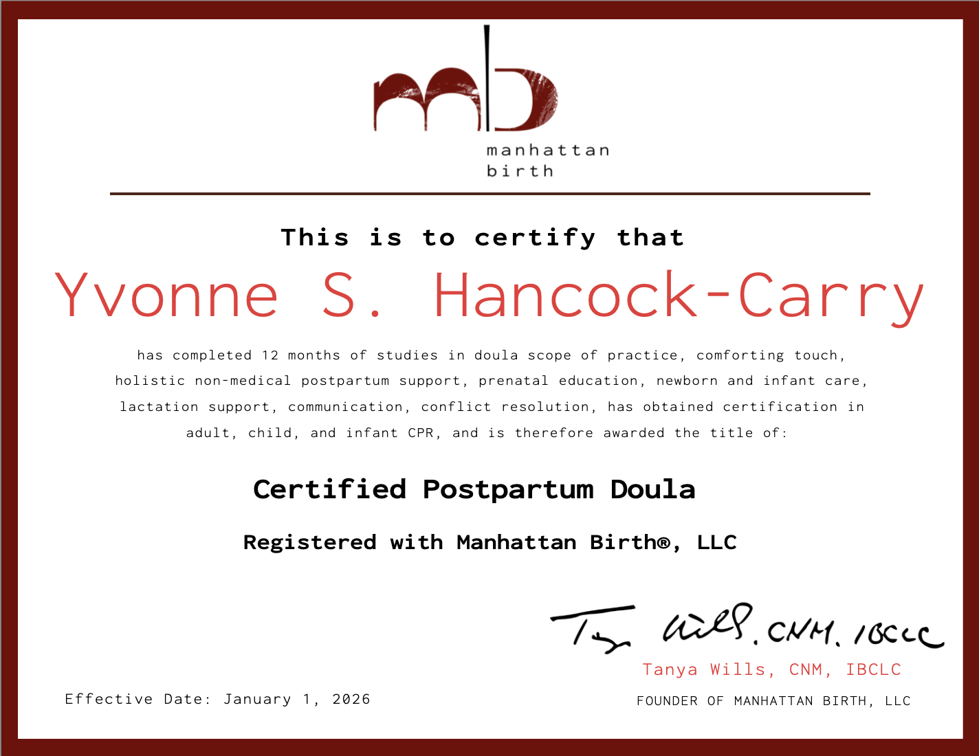 Led by Yvonne Hancock: Your Manhattan Postpartum Doula and Child Development Expert